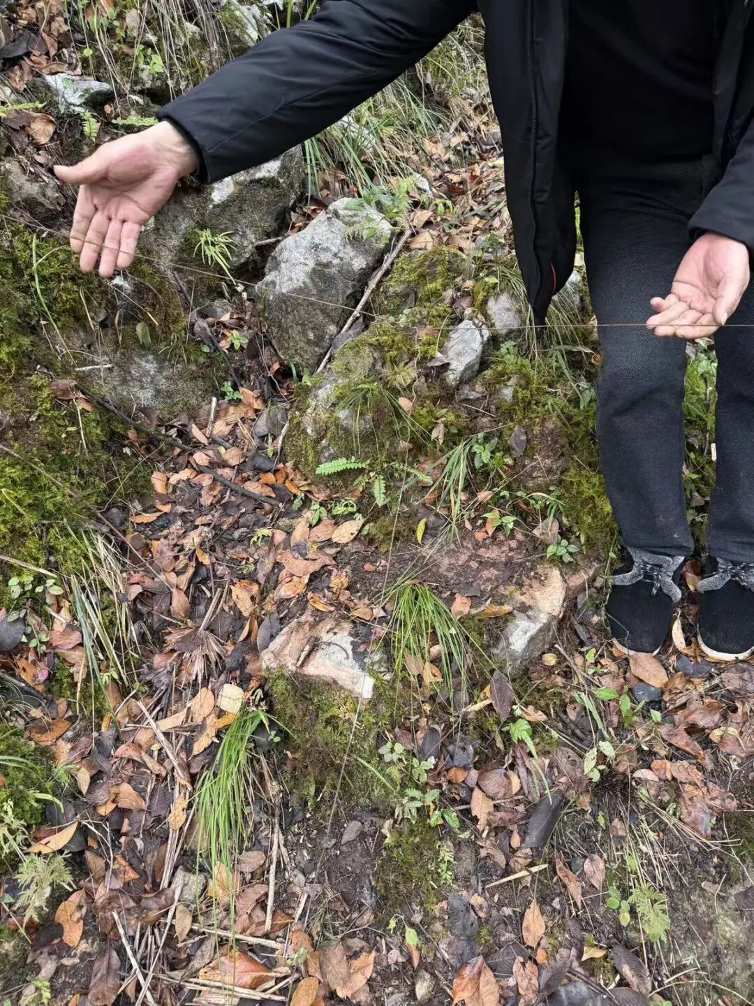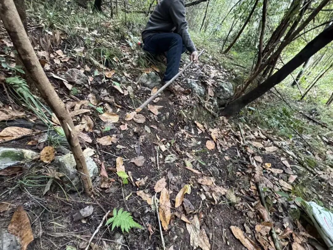 此外,家属们还发现了疑似非法捕猎者生活迹象的地方,附近一个房屋废墟里,有一个火堆;在附近的山路上,也有残留的矿泉水瓶、零食等垃圾。