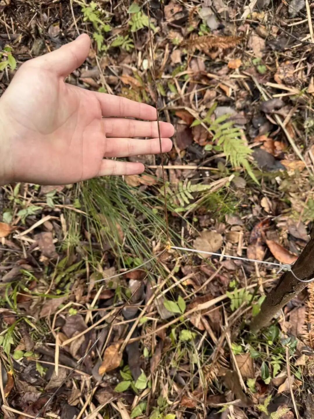 记者看到,铁丝是从几十米外的电瓶装置牵来的。电瓶延伸出两根铁丝,铁丝沿着半山腰布置,分叉向山上和山下延伸,事发地一侧的铁丝已经被拆除,另一侧的铁丝未被拆除向山里延伸,记者沿着铁丝走了十分钟,都没有看到尽头。黄先生称,他此前也沿着铁丝走,走了20分钟都没找到铁丝的尽头,“电网不知道安装了多远。”